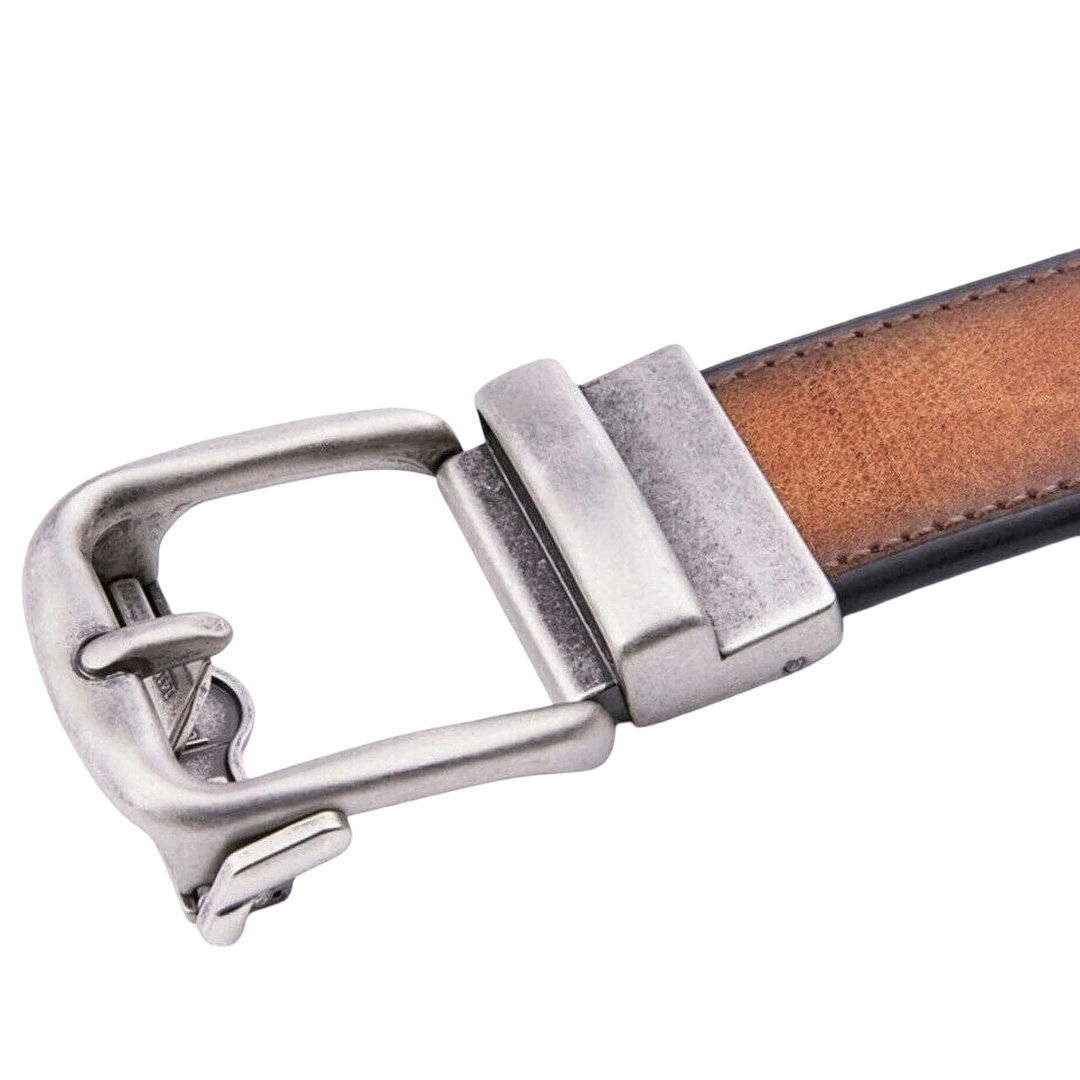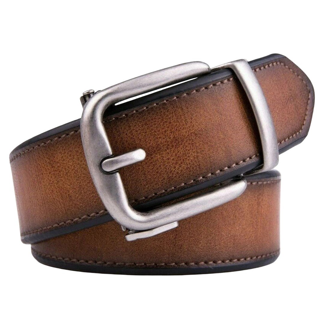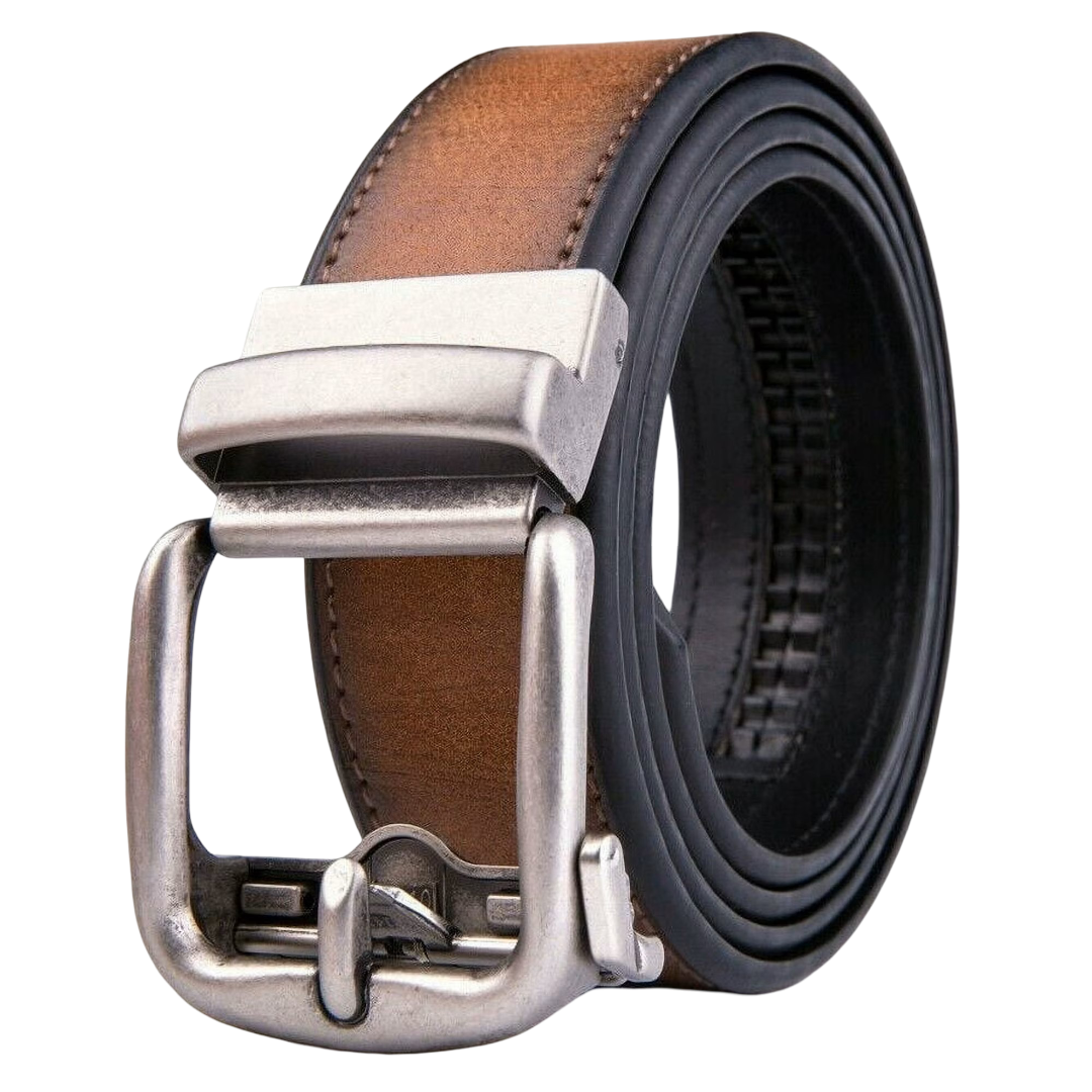 This men’s leather belt features a sleek ratchet buckle design with no holes, offering effortless micro-adjustments for a perfect fit. Crafted from durable leather with a sturdy metal buckle, it provides a smooth, modern look suitable for both dress and casual outfits. The easy-to-trim design allows you to adjust the belt to your ideal size, ensuring lasting comfort and style for any occasion.